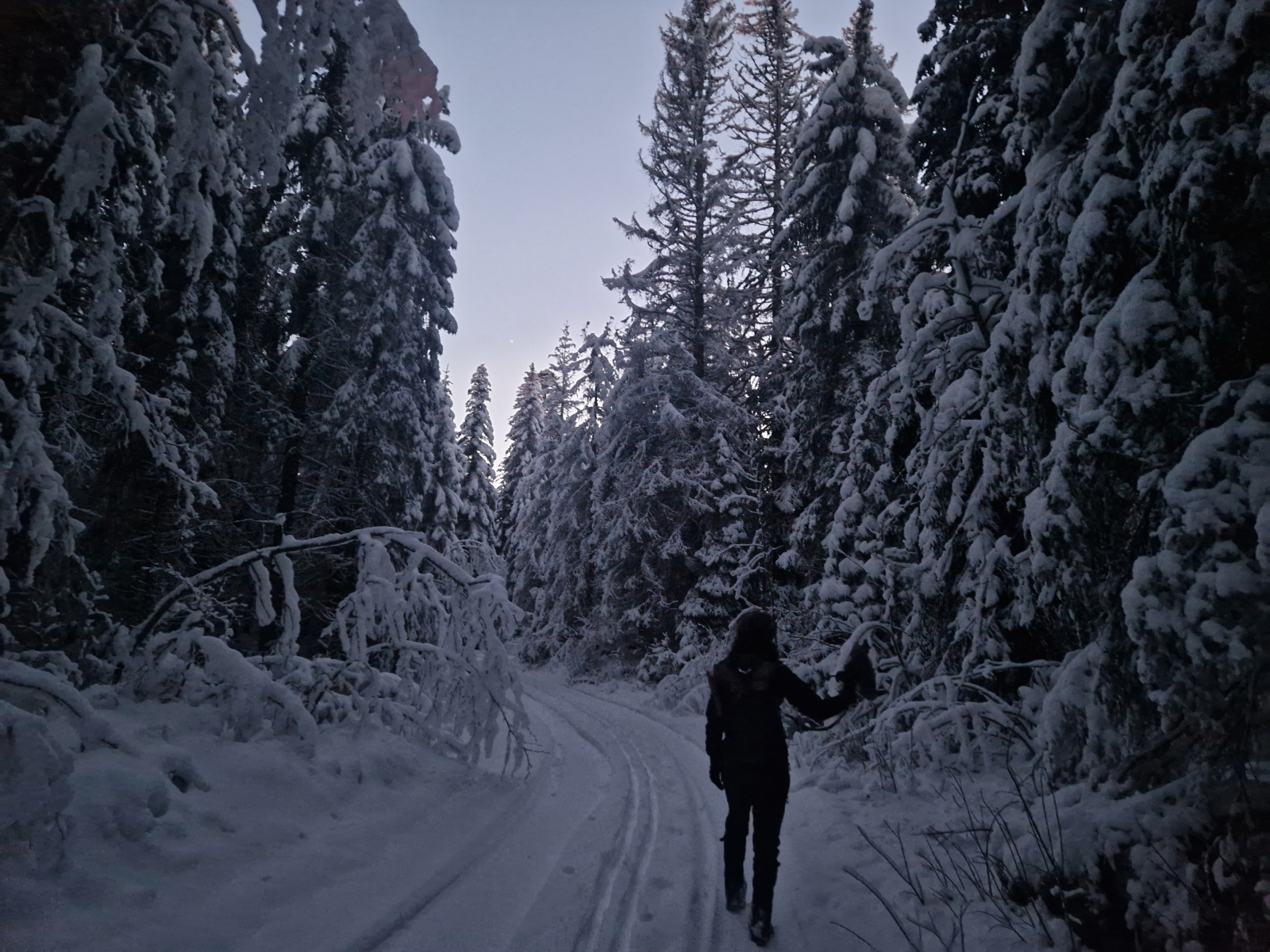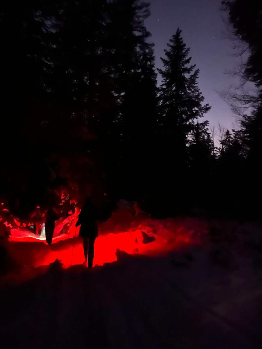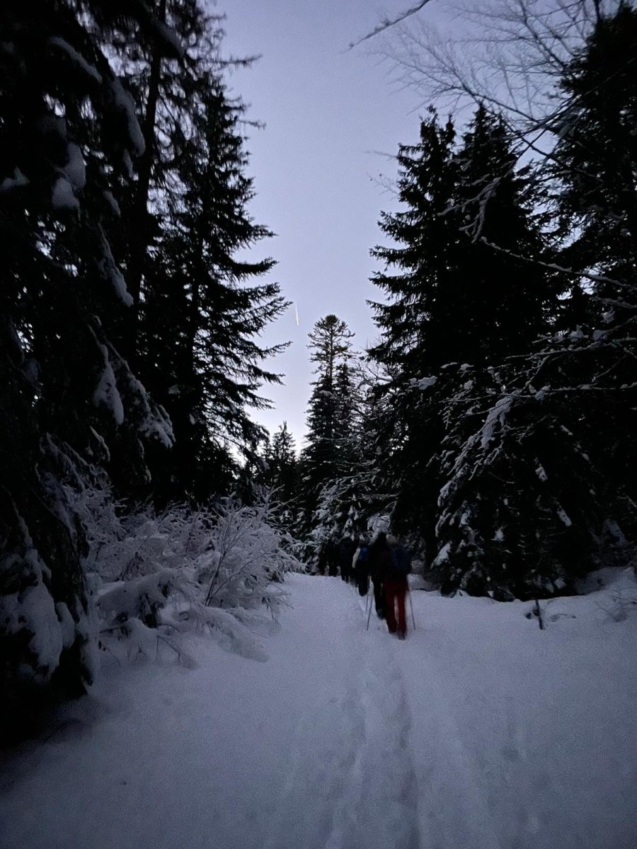 Une randonnée hivernale qui vous invite à écouter et à vous accorder à la quiétude de la forêt au crépuscule.