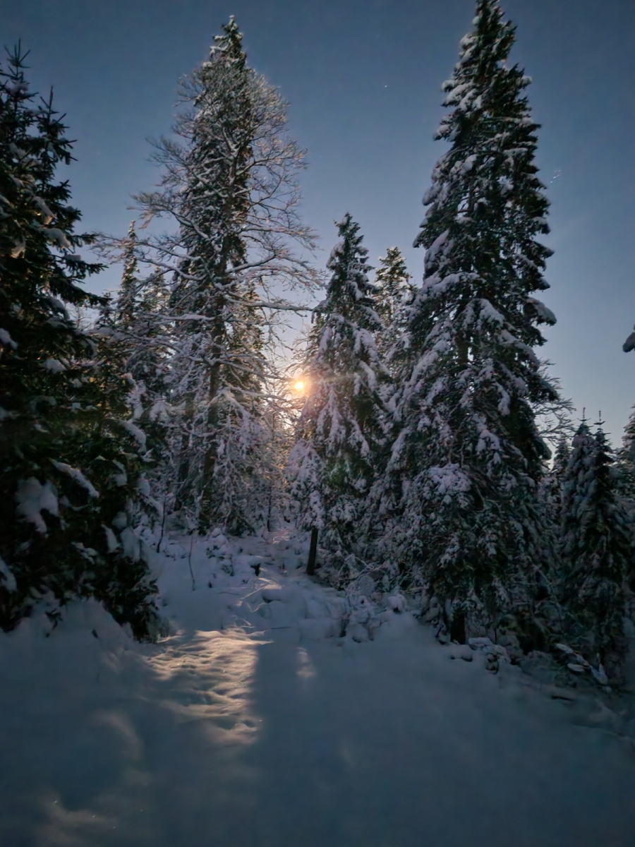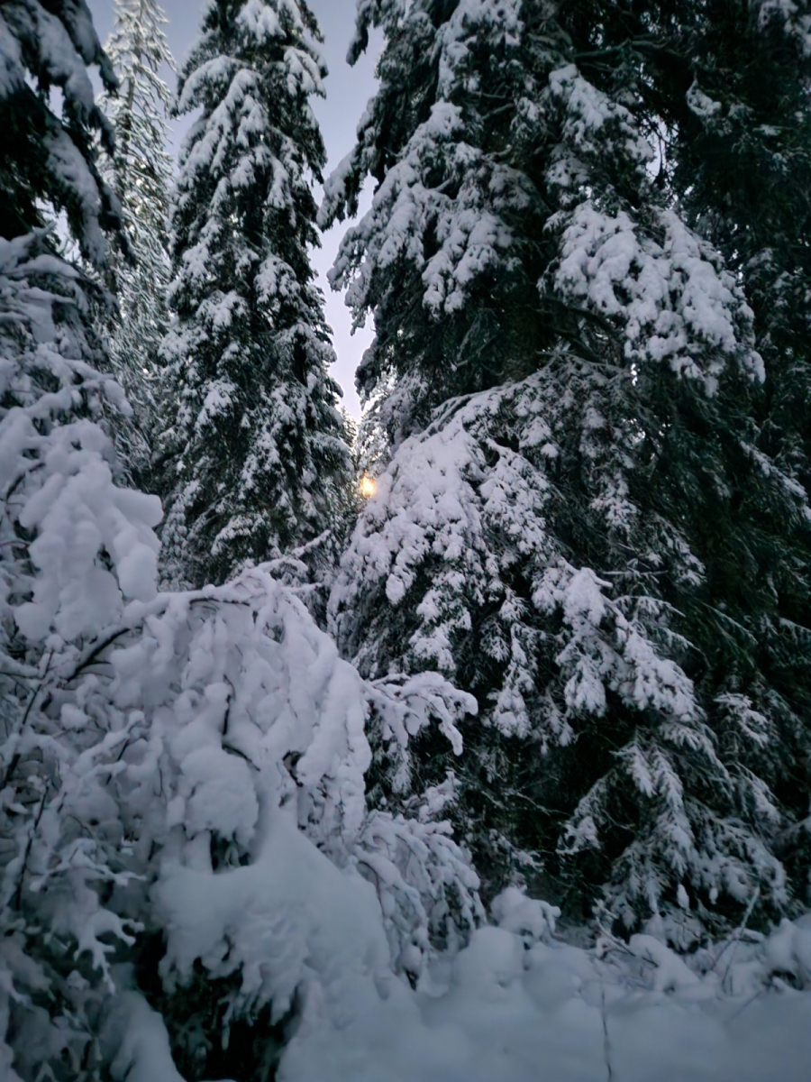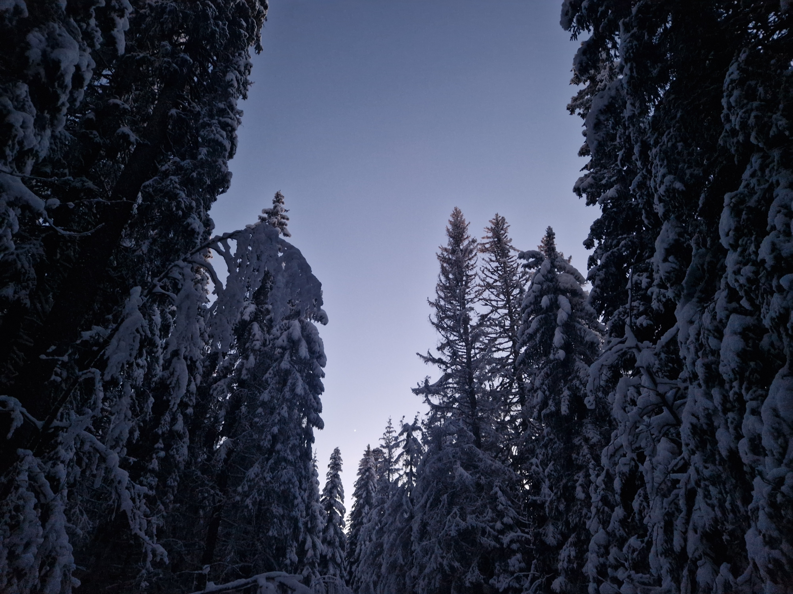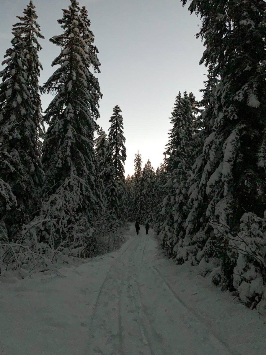 Une randonnée hivernale qui vous invite à écouter et à vous accorder à la quiétude de la forêt au crépuscule.