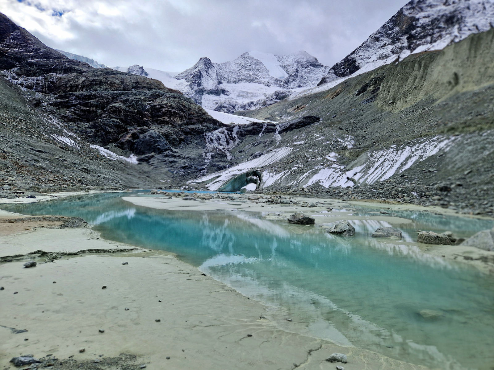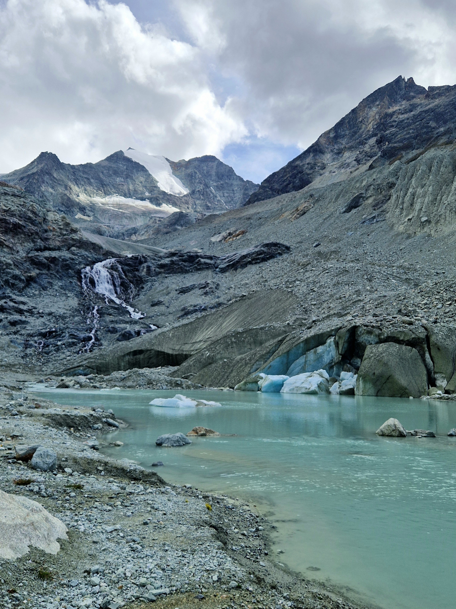Nous commencerons la randonnée au bord du lac de Châteaupré en grimpant doucement le long de la moraine latérale du glacier de Moiry. Peu à peu, nous verrons apparaître les magnifiques sommets en fonds de vallée, Pointes du Mourti, Dent des Rosses, Grand Cornier, Pointe de Bricola et aussi la cabane de Moiry située juste en face de nous. Là, nous apercevrons la langue glacière, le glacier suspendu et ses séracs. Nous surplomberons ce magnifique décor de glace et de roches pour nous mettre à son écoute depuis les hauteurs. Puis nous redescendrons pour rejoindre le bord du lac proglaciaire. Là, dans ce décor de glace et d’eau, au pied du lac et de la voute glaciaire, nous nous plongerons dans l’écoute. La naissance et les rotations d’iceberg alpins sont des grands moments d’écoute. On entends des éclats, cassures fines, frottages, gémissements. On entend la vie d’en-dessous et on écoute mieux qu’on ne voit dans les mondes glacés.